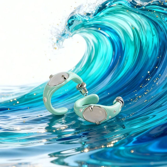 Wholesale 5 Pairs Set Brass Mint Enamel C Shape Hoop Earrings Trendy Chunky Geometric Studs Retail Ready