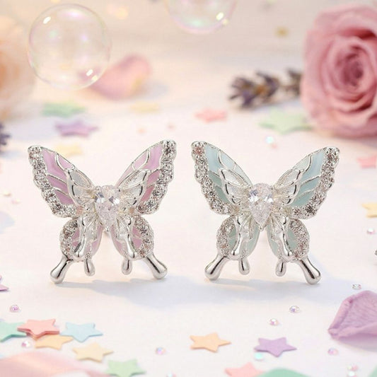 Wholesale 5 Pairs Set Brass Gradient Butterfly Stud Earrings with Zircon Dreamy Two Tone Collection Retail Ready