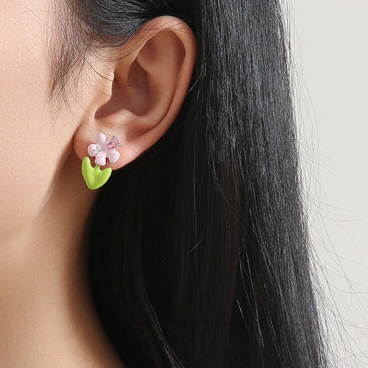 Wholesale 5 Pairs Set Brass Sweet Yellow Enamel Heart Stud Earrings Assorted Fashion Earring Bundles