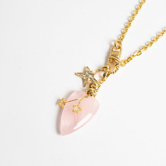 Rose Quartz Heart Pendant Star Charm Necklace five piece set