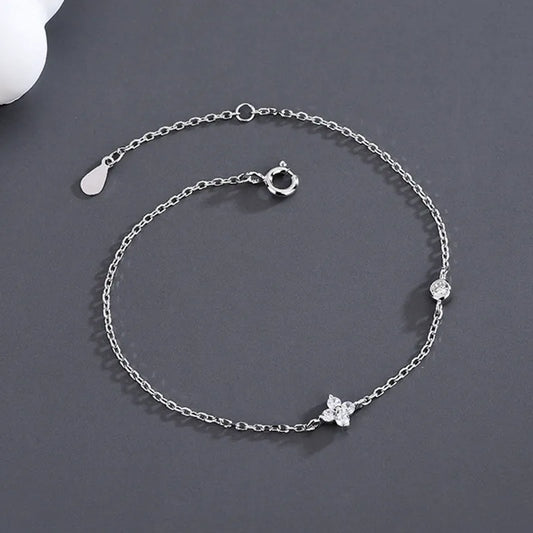 925 Sterling Silver Dainty Four Leaf Clover Lucky Charm Bracelet Set of 5