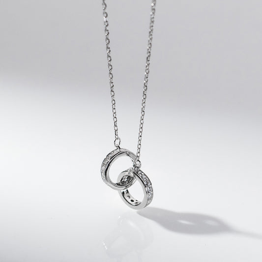 925 silver interlocking two cubic zirconia circle pendant necklace Set of 5