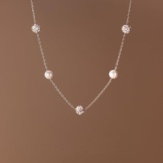 925 single pearl with cubic zirconia choker necklace Set of 5