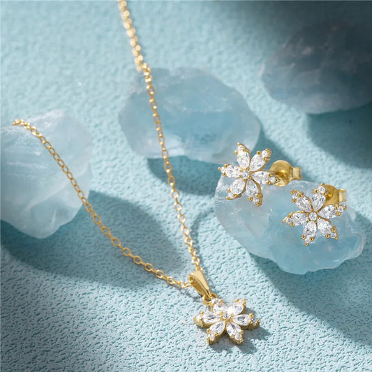 925 sterling silver snowflake stud earring and necklace set (5 Sets)