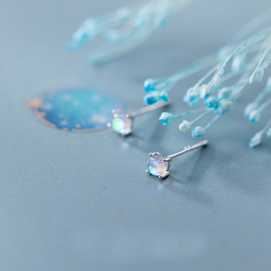 925 silver mini rainbow moonstone stud earrings (5 pairs)