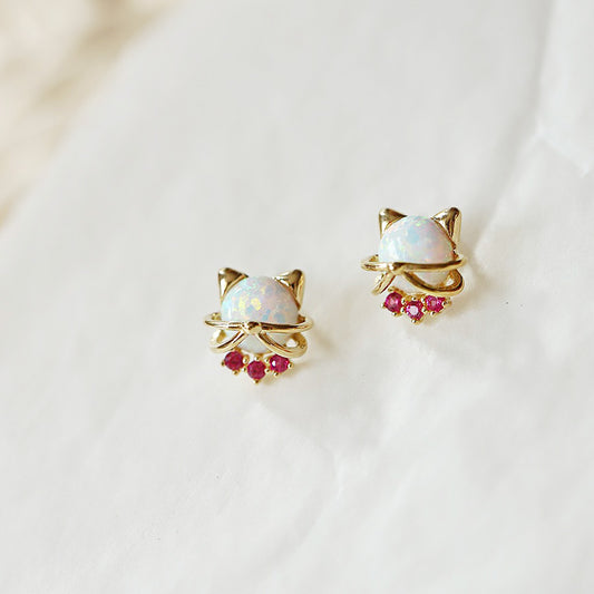 Wholesale 925 sterling silver opal stone cute cat stud earrings (5 pairs)