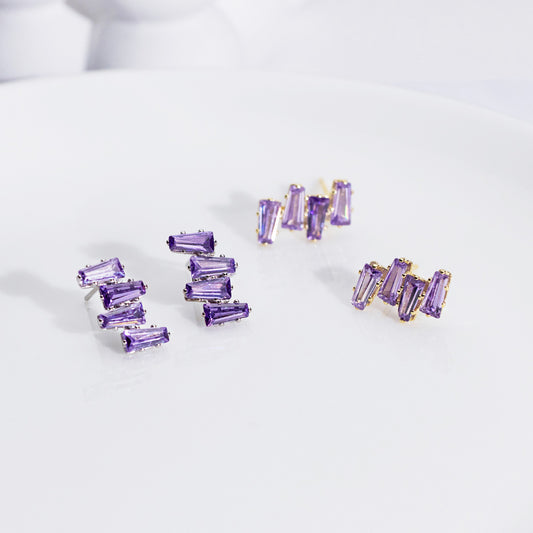Wholesale 925 sterling silver purple crystal jagged baguette stud earrings (5 pairs)