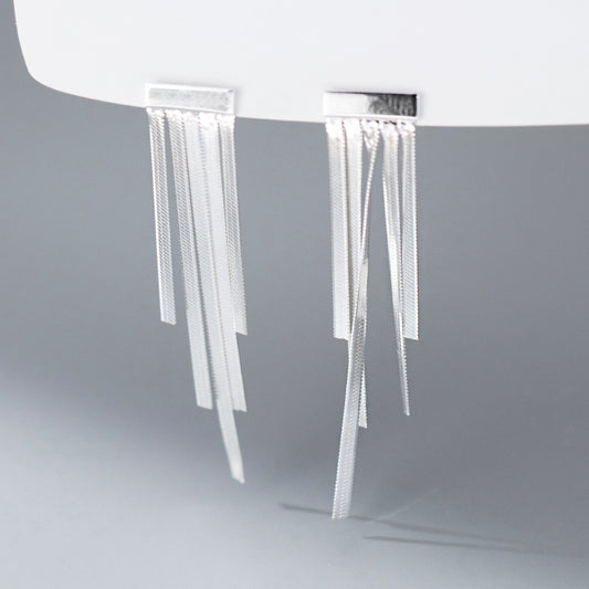 Wholesale 925 sterling silver wide flat tassel drop earrings (5 pairs)