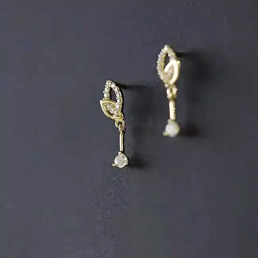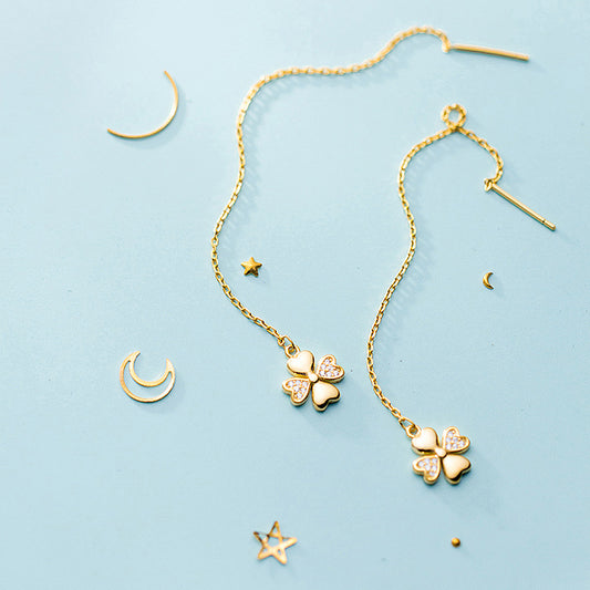 Gold Lucky Four Leaf Clover Zircon Dangle Chain Earrings 925 Sterling Silver (5 pairs)