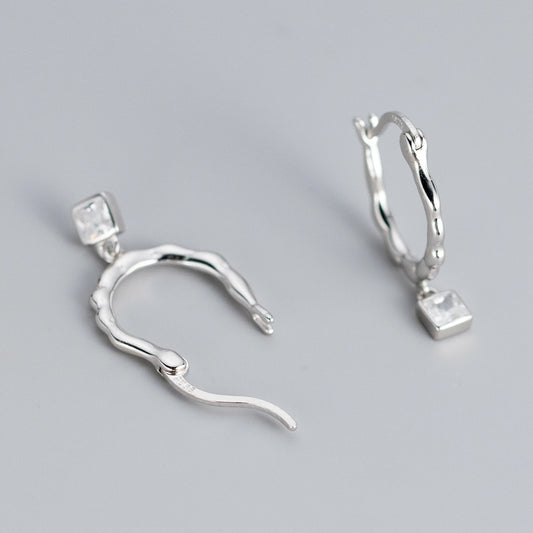 Twisted Square-Cut Zircon Earrings 925 Sterling Silver Elegant Simplicity (5 pairs)