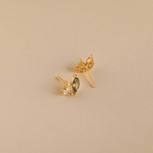 S925 Marquise Cut CZ Stud Earrings Gold Plated Summer Beach Jewelry (5 Pairs)
