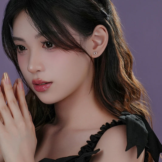 Sterling Silver Cat Ear Stud Earrings with Cubic Zirconia Cute Christmas Gift for Cat Lovers (5 Pairs)