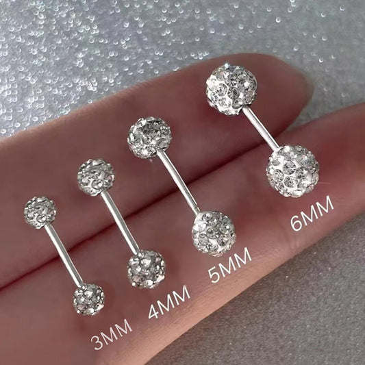 999 Silver Crystal Ball Stud Earrings Sparkling Disco Ball Style for Women (5 Pairs)