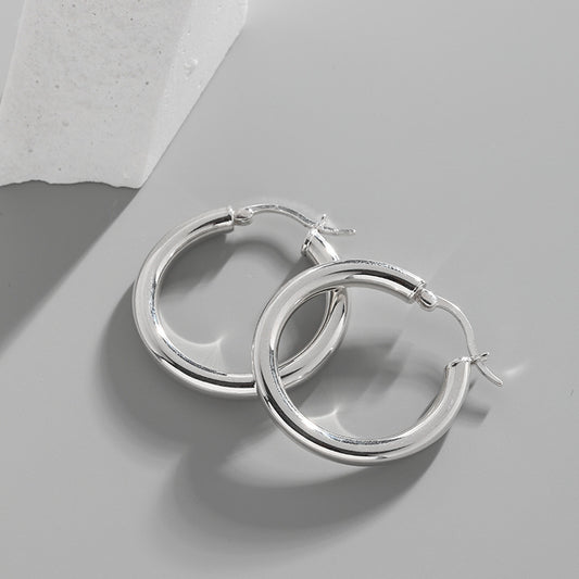 Wholesale 925 Sterling Silver Thick Tube Hoop Earrings White Gold Plated for Women Daily Wear (5 Pairs)