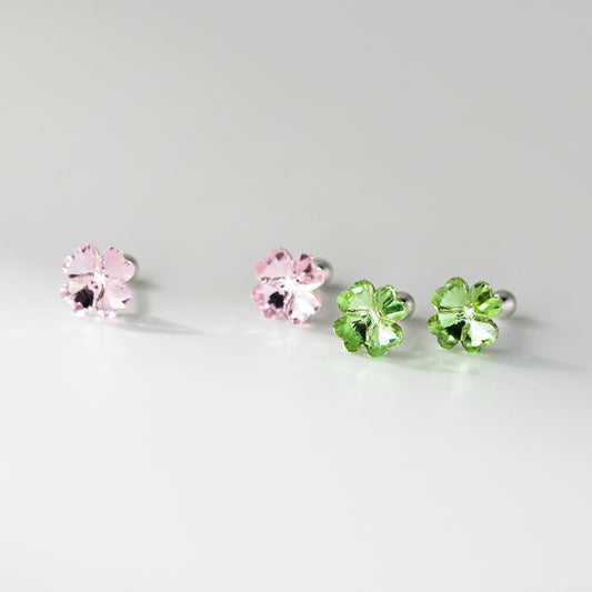 Wholesale 925 Sterling Silver Earrings Colorful Crystal Four Leaf Clover Cartilage Studs for Women (5 Pairs)