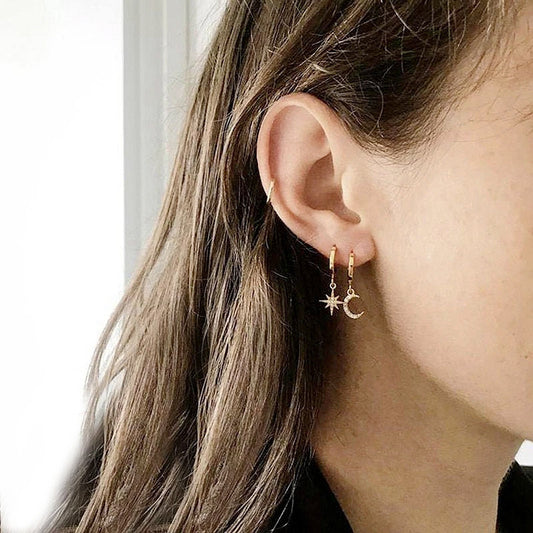 925 sterling silver vintage star moon asymmetric hoop earring (5 pairs)