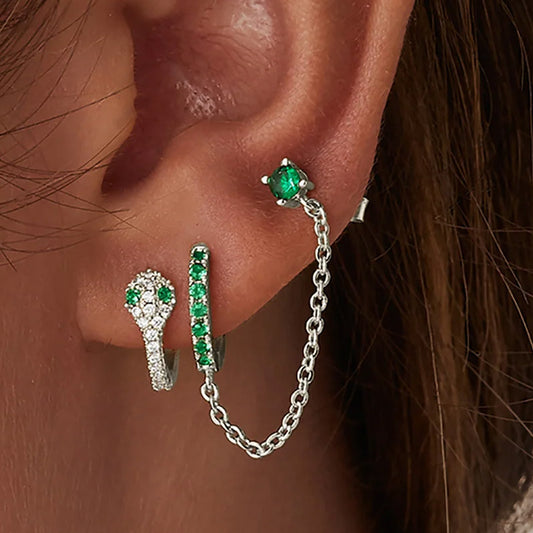 925 sterling silver chained huggie hoop with CZ stud (5 pcs)