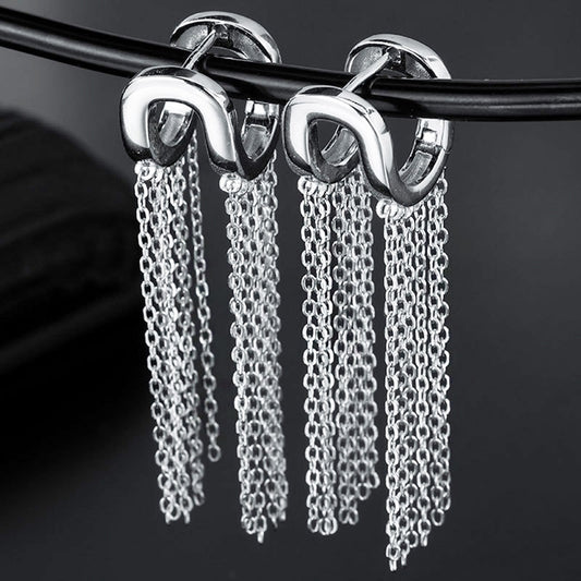 S925 sterling silver short and long chain tassel glossy U-shaped ear clasp earrings (5 pairs)