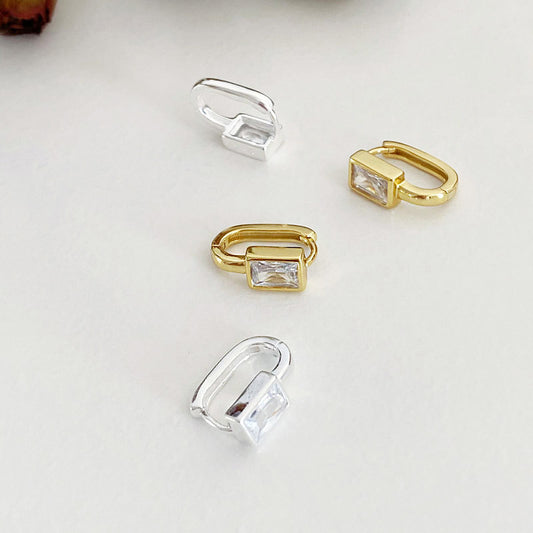 925 sterling silver vintage square zircon U-shaped ear clasp earrings (5 pairs)