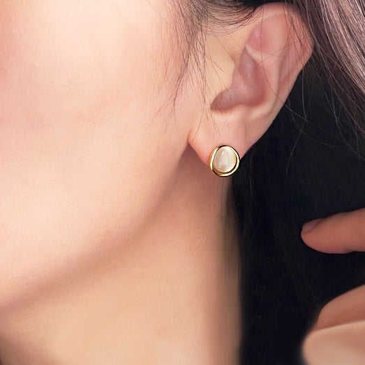 925 sterling silver simple cat eye stone stud earrings (5 pairs)