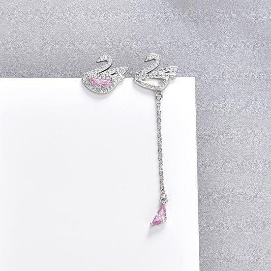 925 sterling silver asymmetrical crystal swan drop stud earrings(5 pairs)