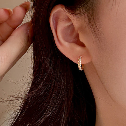Double Twist Hoop Earrings 925 Sterling Silver Gold Plated Minimalist Jewelry Wholesale (5 Pairs)