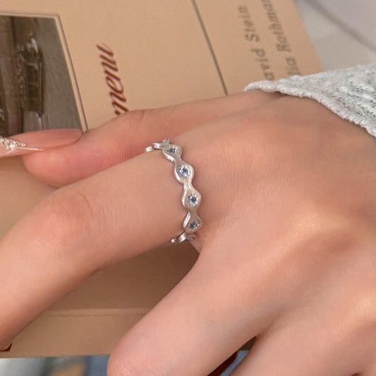 Blue Cubic Zirconia Ring S925 Silver Brushed Adjustable Wholesale Set of 5