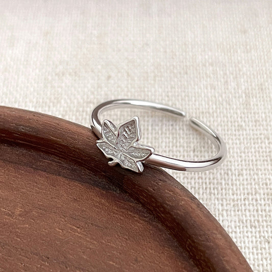 925 Sterling Silver Maple Leaf Adjustable Ring Minimalist Jewelry Wholesale Set of 5