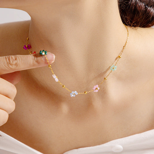 Stainless steel jewelry colorful floral flower charms chain necklaces Set of 5