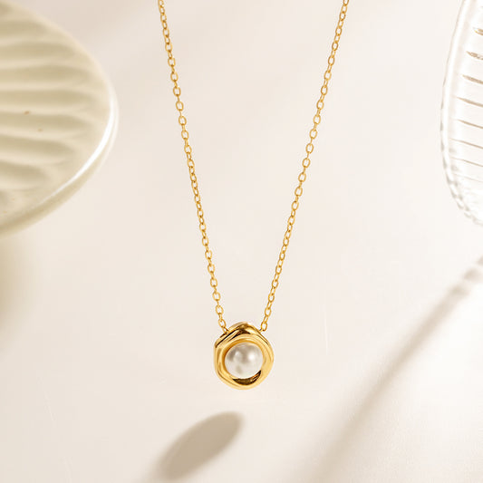 Stainless steel gold single irregular inlaid pearl pendant necklaces Set of 5
