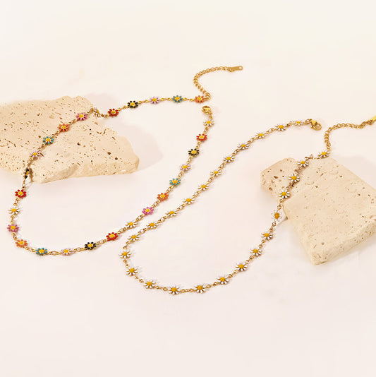 Stainless steel enamel daisy flower chain choker necklaces Set of 5