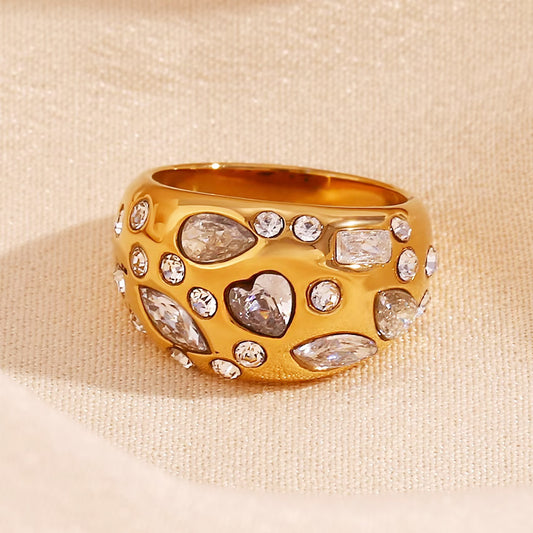 stainless steel cz pave zircon heart dome rings gold plated Set of 5