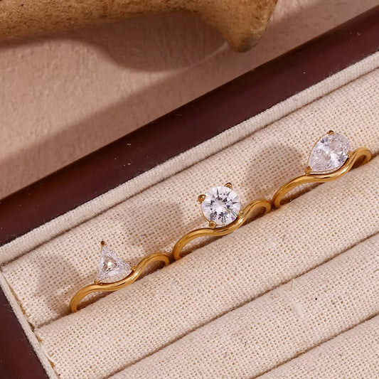 women geometric stackable wavy zircon stainless steel solitaire ring Set of 5