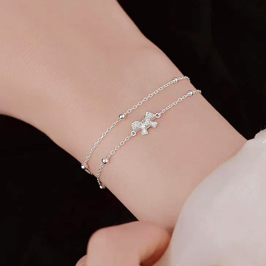 Wholesale double layer coquette bow stacking bowknot 925 silver bracelet with bow Set of 5
