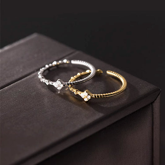 Irregular stackable jewelry 925 sterling silver adjustable cuff finger wave wavy ring Set of 5
