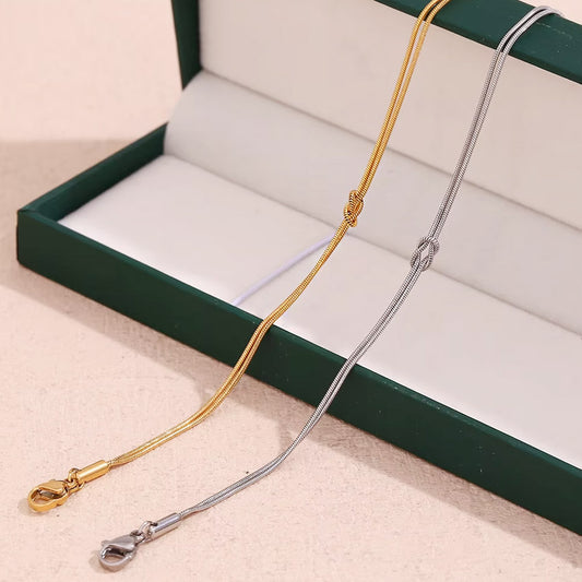 Minimalistic tie the knot double layered couple gold thin snake chain knot bracelet Set of 5