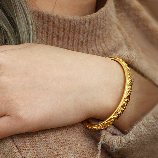 Women stainless steel 18k gold open cuff sun and moon bracelet bangle Set of 5