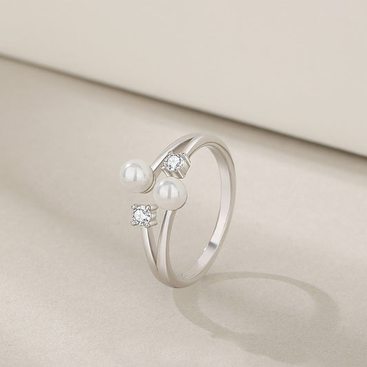 925 sterling silver rose gold double layered heart CZ opening ring Set of 5