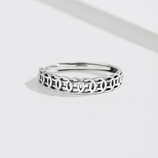 925 sterling silver lucky fortune vintage Chinese coin adjustable size ring Set of 5