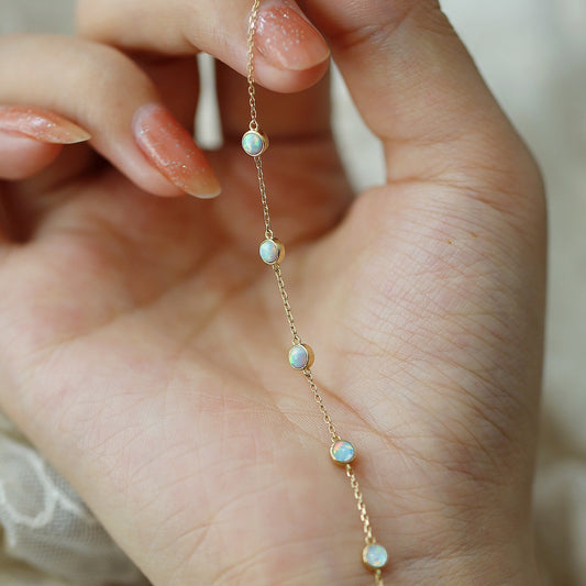 925 sterling silver gold round mini opal chain bracelet Set of 5Regular price $49.50 USDRegular priceUnit price / per-