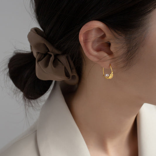 925 sterling silver french jewelry gold pearl feather C hoop stud earrings (5 pairs)Regular price $20.00 USDRegular priceUnit price / per-