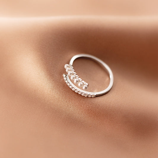925 sterling silver delicate zircon tiny pearl adjustable ring Set of 5Regular price $20.00 USDRegular priceUnit price / per-