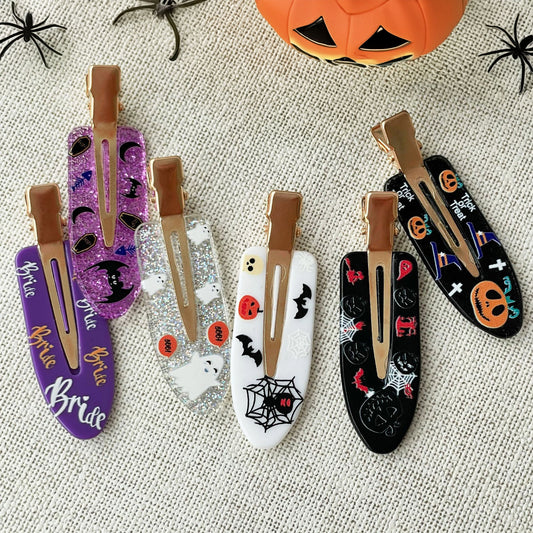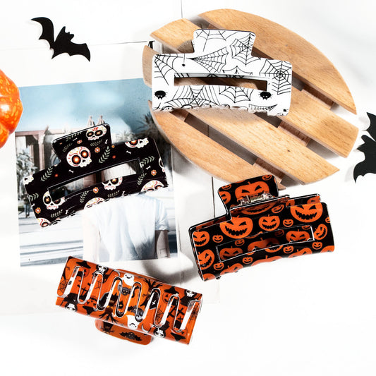 No Crease Hair Clip: Acrylic Halloween Clips with Pumpkin, Bat, and Moon Prints for Women and Girls (5 pcs)