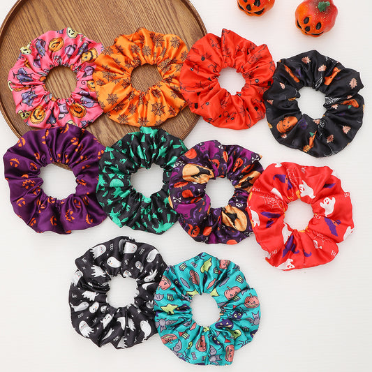 Halloween Scrunchies Bulk: Classic Pumpkin, Ghost, and Spider Designs, 10 Colors (5 pcs)