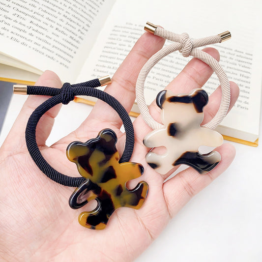 Pony hair rope acetic acid acetate bear shaped charm elastic hair tie bands (5 pcs)