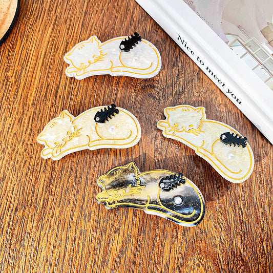 Acetic acid acetate cat shape with fish bone and pearl hair clips (5 pcs)