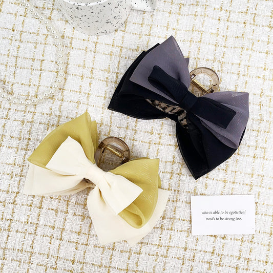 Two layers double color fabric bow knot with plastic hair claw clips (5 pcs)