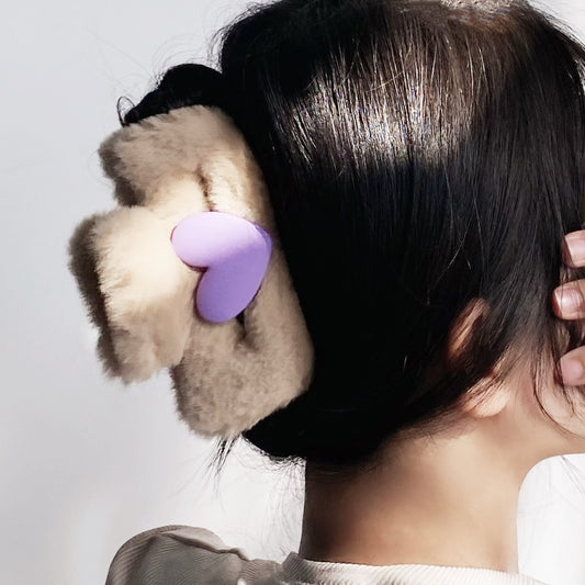 Women winter fluffy plush claw hair grip clips (5 pcs)