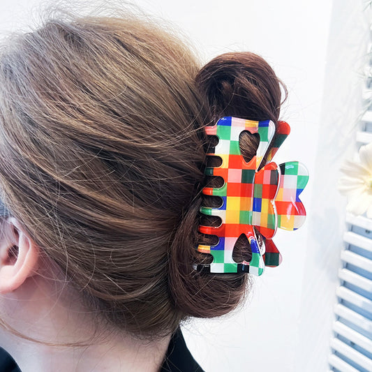 Plastic colorful retro rainbow chessboard style elegant hair claw clip hair grips (5 pcs)