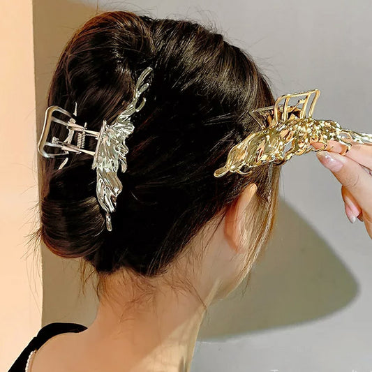 Metal 7.5cm pumpkin shape ponytail anti-slip hair clips for women (5 pcs)
